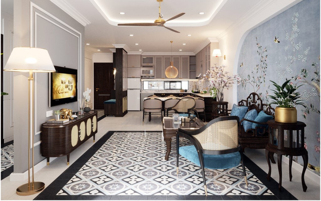 Phong cách nội thất Indochine hiện đại không chỉ giữ vững giá trị truyền thống mà còn giao thoa với nghệ thuật hiện đại. Nó có thể là sự đồng điệu của đồ trang trí truyền thống với tranh hiện đại, tạo nên một không gian sống phản ánh sự đa dạng và sáng tạo.