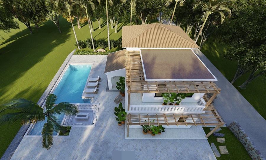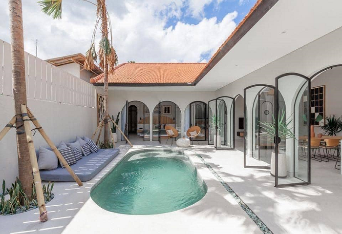 Điểm nhấn nước: Một số ngôi nhà trong phong cách này có hồ bơi hoặc các yếu tố nước khác như suối nhân tạo, phun nước, tạo điểm nhấn và làm mát không gian.