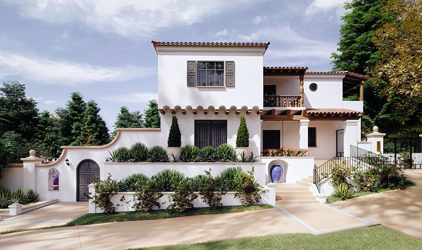 Kiến trúc: Các ngôi nhà trong phong cách này thường có các đặc điểm như mái ngói đỏ, cửa sổ và cửa ra vào lớn, và các sân trong nhà (patio) rộng rãi. Kiến trúc thường mở ra bên ngoài để tận dụng ánh sáng tự nhiên và làm mát cho ngôi nhà.