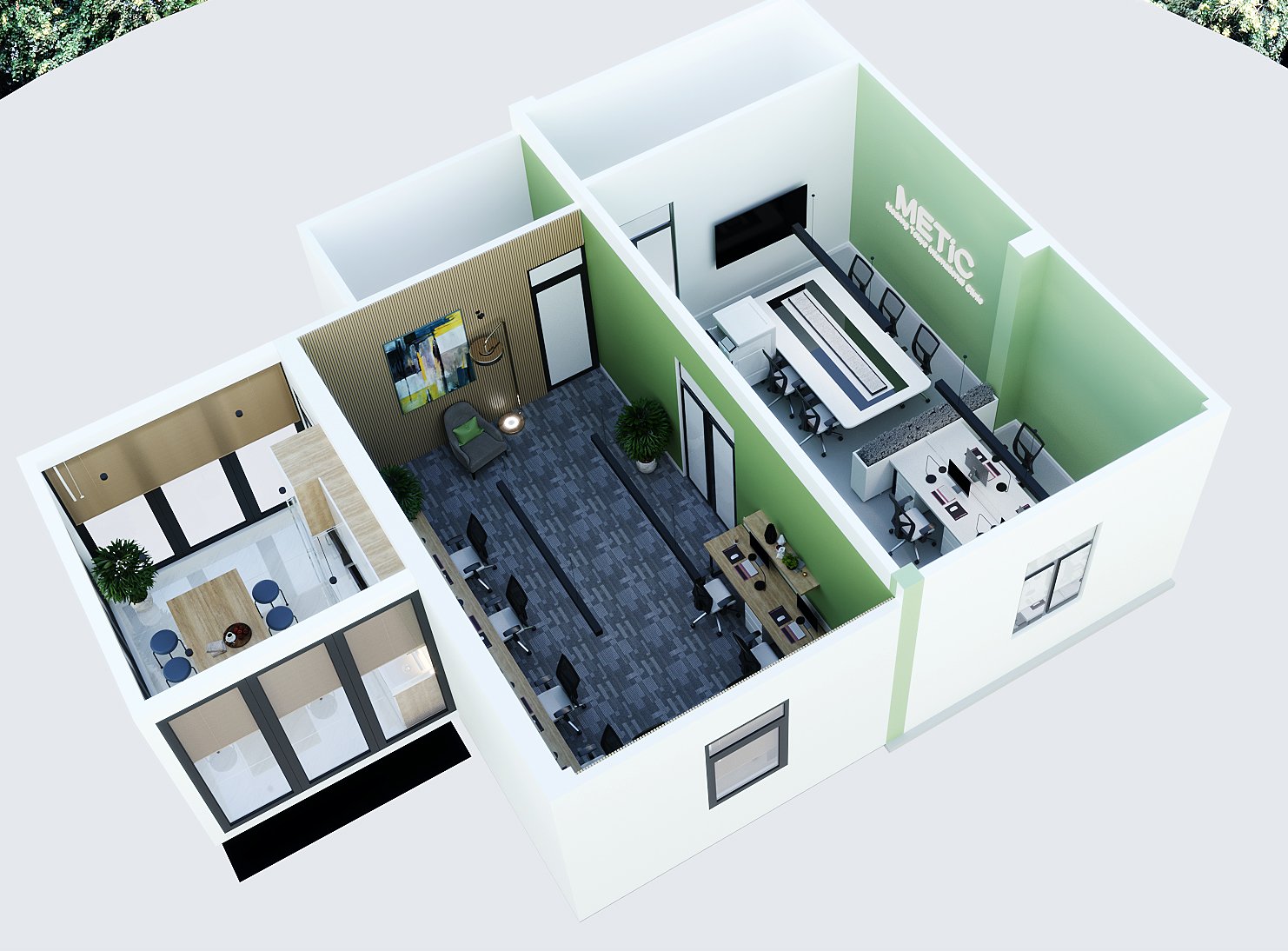 Được sự tín nhiệm của đơn vị Metic, chúng tôi đã nỗ lực lên ý tưởng thiết kế cho văn phòng thuận lợi và hợp lý nhất